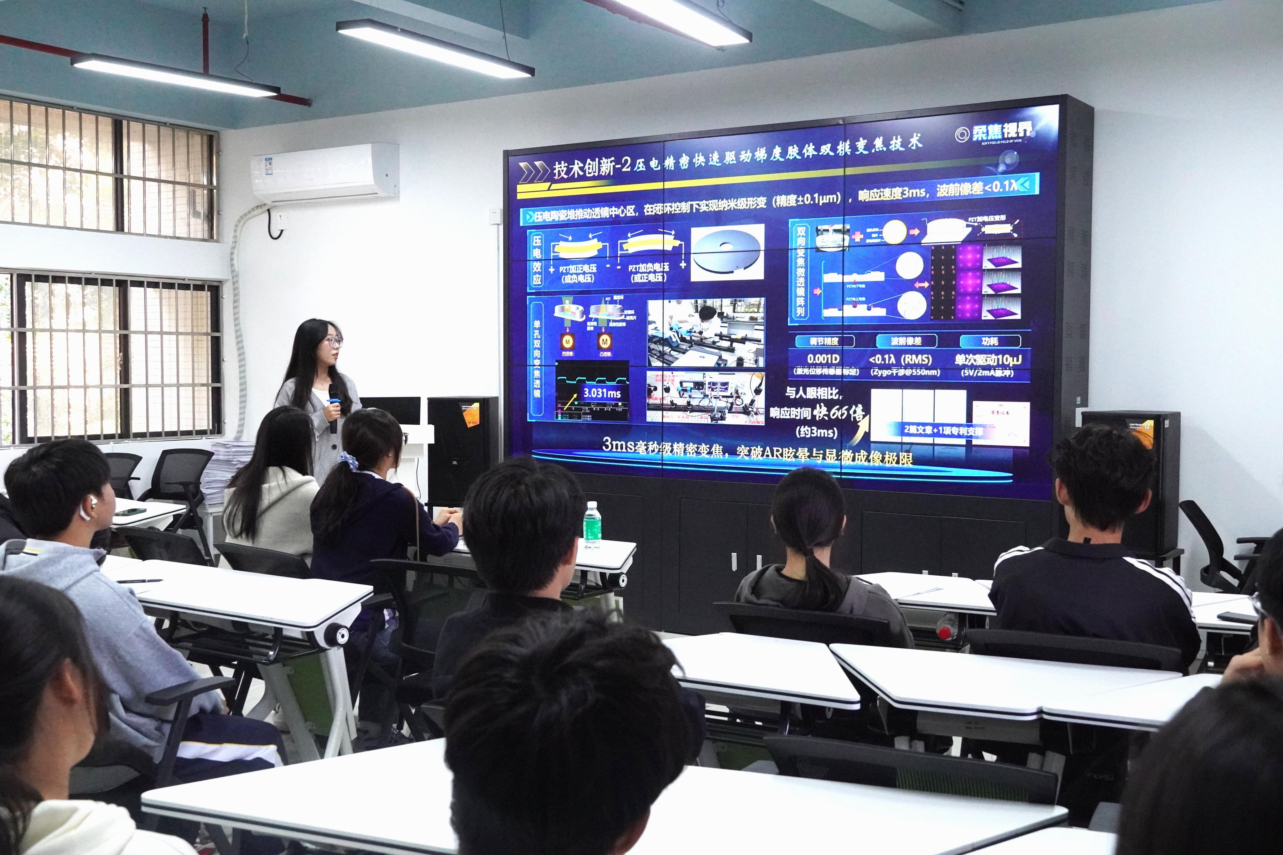 在大赛的舞台上,大学生创新的目光从实验室望向了更广大的实际需求,点燃了他们将技术推向应用、用创新服务社会的火种。获得国赛铜奖的《无酶智测——引领尿酸自然检测的无酶技术革命先锋》项目和入围总决赛的《柔焦视界——面向机器视觉等智能光学设备的多机制驱动胶体透镜》项目,其团队成员分别就其关键技术、参赛体会与成长过程展开阐述,分享了他们如何将平日科研积累和学科专业知识落地转化为创新成果和社会价值。与会学生踊跃发言,围绕跨学科团队组建、备赛瓶颈、技术开发等问题展开提问与深入交流。团队成员结合自身的参赛经历,给予了细致的解答和建议,现场反响热烈。